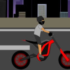 The bike’s stability depends on two linked variables: tilt angle and angular momentum. Pressing the tilt input adjusts angle quickly; momentum carries that angle forward. A small continuous correction window exists — holding the input too long increases backward torque and risks a flip, while tapping too often loses forward momentum. Score increases per second while the front wheel stays elevated; occasional speed bumps and subtle slopes change the required input rhythm.